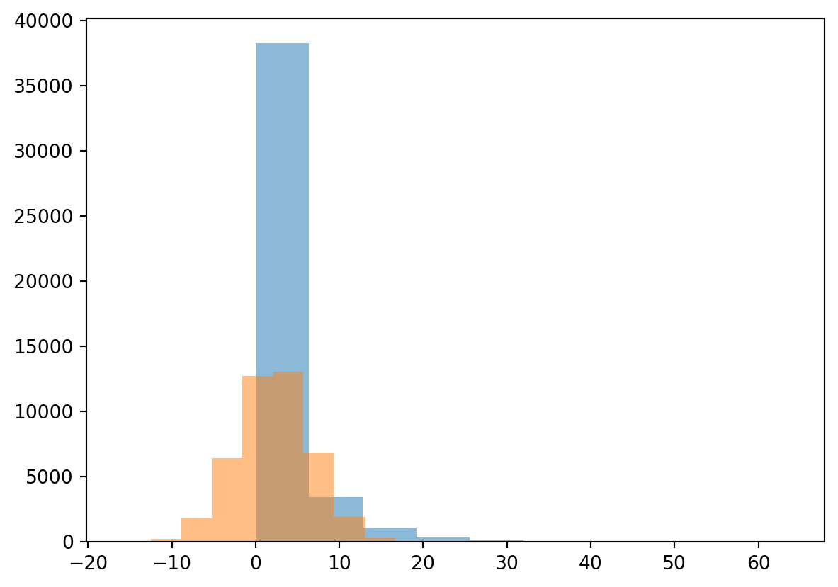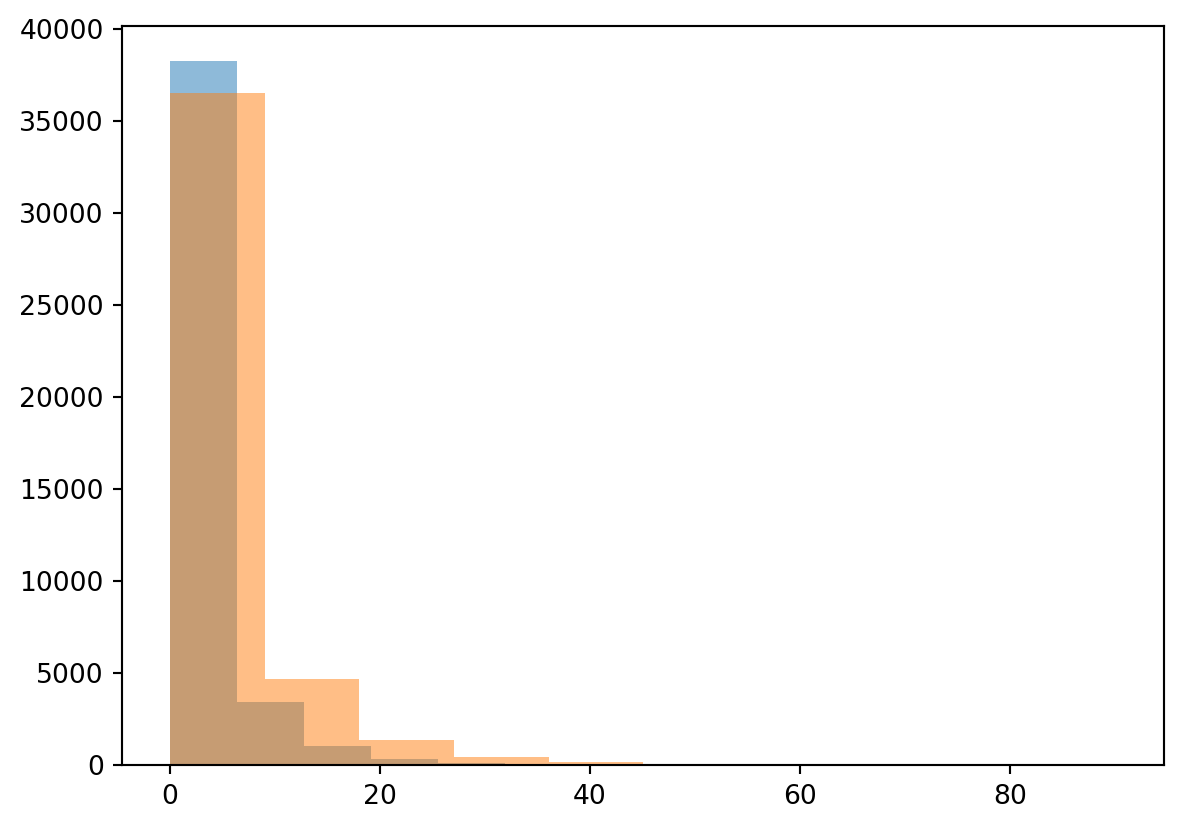 Then plot the histogram of both selections to look at the distribution (also needed for the next sub-question)