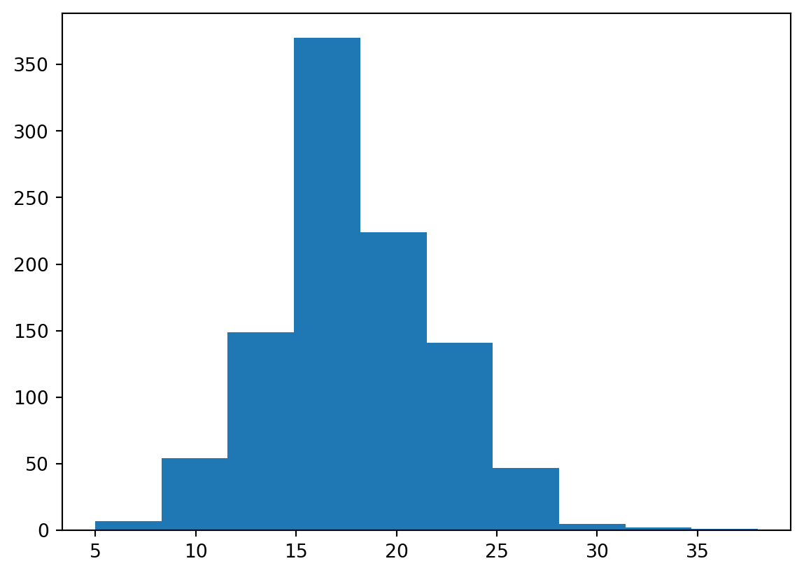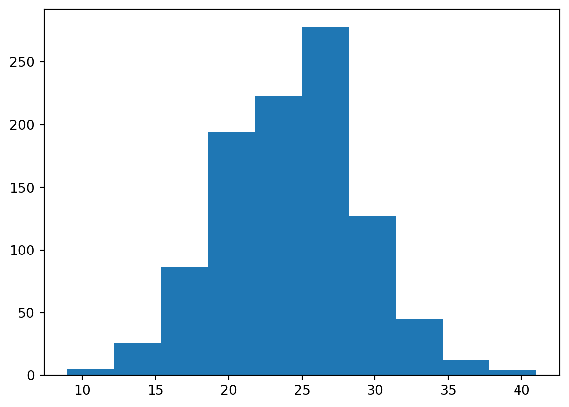 plt.hist(randomYears)24.313368960241256