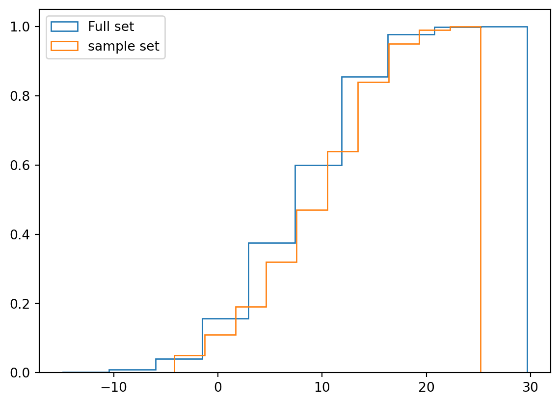 sampleData.hist(cumulative=True, density=True, histtype='step',label="sample set")array([[<Axes: title={'center': 'Tas'}>]], dtype=object)