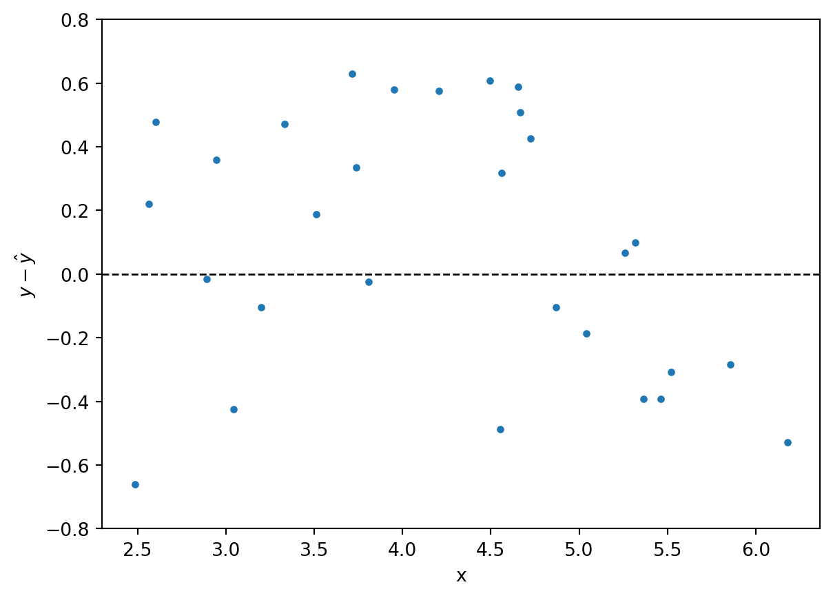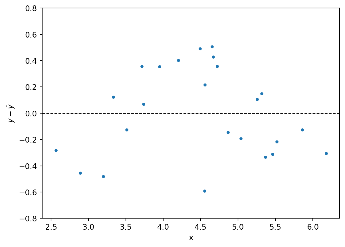 Here, \(\beta_0\) and \(\beta_1\) are the parameters of the model, and \(\epsilon\) represents the error term. The parametric nature of linear regression means that once we estimate these population parameters from the sample data by calculating regression coefficients \(b_0\) and \(b_1\), we can use them to make predictions and perform further analysis based on the underlying assumptions of the data distribution. Particularly the assumptions about the normal distribution of the errors at any point along the x-scale is important. This means we can apply the statistical tests that are related to the normal distribution founded in the Central Limit Theorem, such as the t-test and F-test (also see Chapter 6.3–6.4 of Haslwanter, 2022).