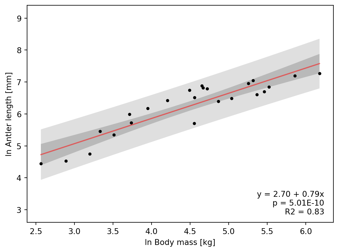model = ols("Antler_length_ln ~ Male_mass_ln", data=antlers_fltr)