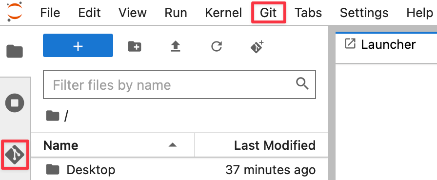 - In JupyterLab, look for the Git icon in the left sidebar