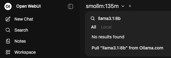 When you access the workspace for the first time, a default model smollm:135m is already loaded. However, you may want to download and use other models. See Ollama models for a complete list of models.
